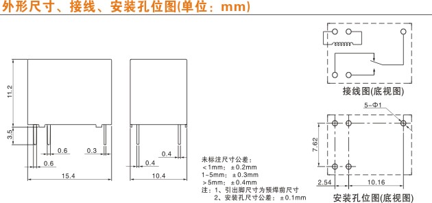 尺寸要求繼電器的體積:長、寬、高
